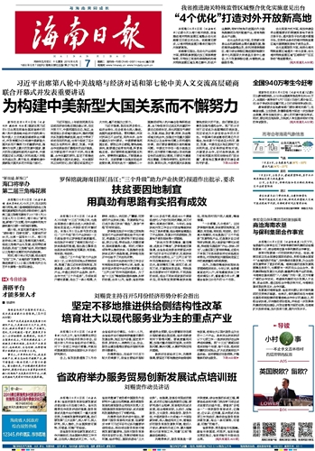海南日报 头版 001 2016-06-071 2016年06月07日 星期二