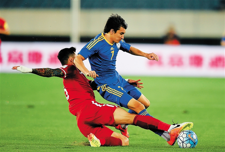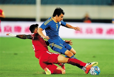 乌兰重伤下场之后,下半时哈萨克斯坦队球员的情绪有些急躁,他们频频使出飞铲等动作,有一名球员领到红牌被罚出场。