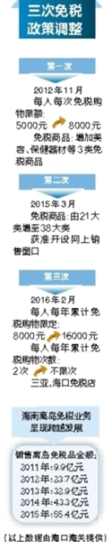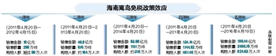 据海口美兰机场免税店相关负责人介绍,离岛免税政策每一次调整都使该店免税销售额得到20%以上乃至数倍的增长,释放效应明显,营业收入连续4年保持高速增长,2015年全年销售收入超过12亿元,年均同比增幅在40%以上,4年累计总收入超过30亿元。