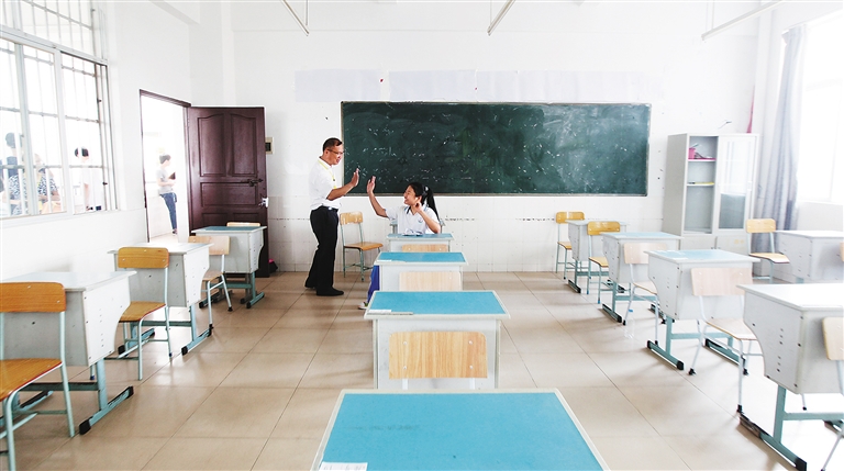 “放轻松,一定能发挥好!”今天下午2时20分,海口市第四中学考生小云考试前笑着和特地来看望她的省残联教育就业部主任李辉击掌,显得自信满满。因获批可优先10分钟进入考场,此时教室里还没有其他学生。