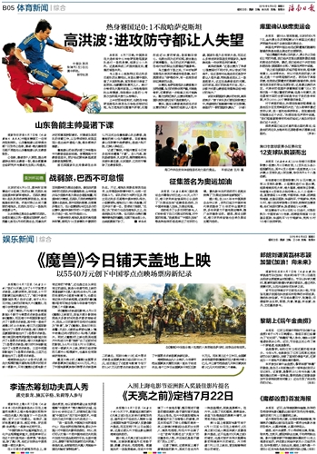 海南日报 体育新闻 娱乐新闻 017 2016-06-081 2016年06月08日 星期三