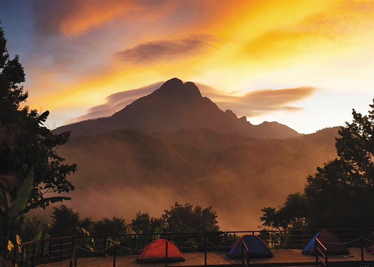 “这里是观赏五指山的最佳位置,山顶大部分时间云雾缭绕,只有雾开云散时,才能看清五指山‘真容’。每到周末或节假日,这个观山点平台上游客很多,非常热闹。”五指山市旅游商务局相关负责人告诉记者,从观山点望去,五指山下的风景一年四季都会有变化,尤其是冬季,从山脚到山腰,海拔不同,枫叶颜色层次分明,就像一幅色彩斑斓的画卷,蔚为壮观。