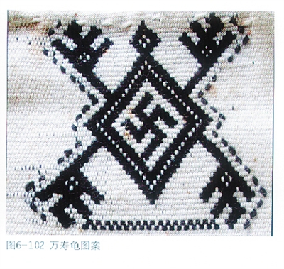 黎族传统织锦纹饰“卍”形符号被广泛应用。“卍”本来不是字,据考证,早在7000多年前的甘肃青海地区的先民制造的陶器上已有了“卍”型符号,后至唐代下令把这种符号正式作为汉字,读作“万”音,并取万德吉祥的意思,一直传至今天。