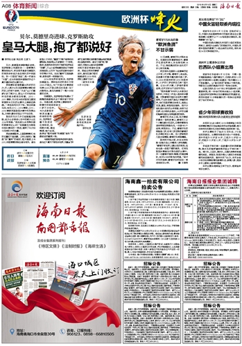 海南日报 体育新闻综合 008 2016-06-141 2016年06月14日 星期二