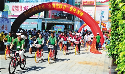 6月14日是第四个“全国低碳日”,当天上午,我省在海口望海广场举行“全国低碳日”宣传活动,千名骑行爱好者沿海秀东路—五指山路骑行宣传低碳环保出行。