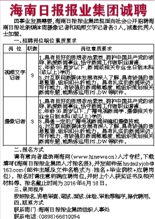 海南省人力资源和社会保障厅 关于2016年海南省高校毕业生“三支一扶”计划招募的简要公告