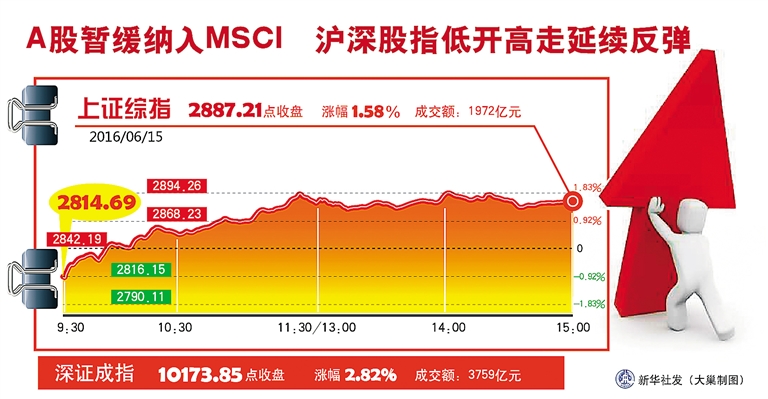 当日上证综指以2814.69点低开,早盘下探2811.78点后开始掉头上行进入红盘区域,午后上摸2894.26点。尾盘沪指收报2887.21点,较前一交易日涨45.02点,涨幅为1.58%。深证成指收复万点整数位,收盘报10173.85点,涨278.70点,涨幅为2.82%。尤其是前期经历大幅调整的创业板指数当日表现抢眼,录得3.42%的较大涨幅后以2128.80点报收。