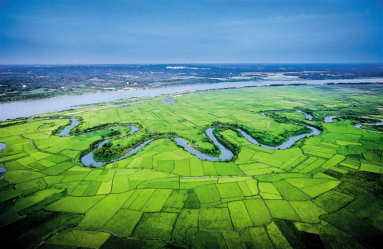 近日雨量充沛,海口市南渡江畔的五一田洋一片青葱。田洋的美令人惊叹,已成为摄影和观光的亮丽风景。 本报记者 李幸璜 摄