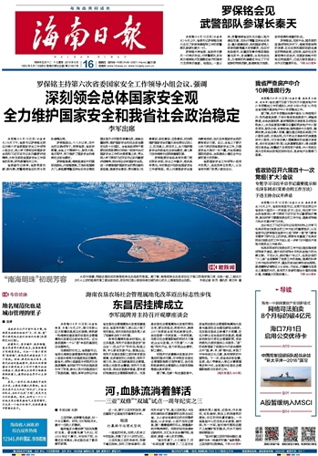 海南日报 头版 001 2016-06-161 2016年06月16日 星期四