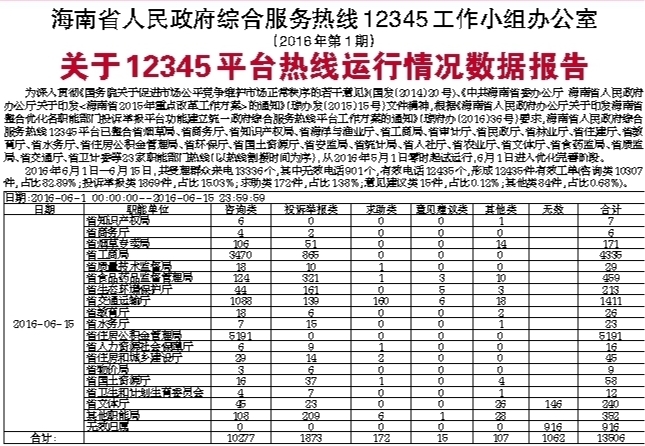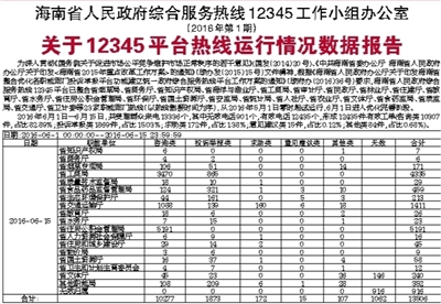 海南省人民政府综合服务热线12345工作小组办公室(2016年第1期)