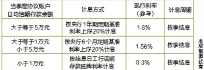 每季度结息日为3月21日、6月21日、9月21日和12月21日。结息时,为符合条件的签约账户支付两次利息,第一次为活期存款利息,第二次为薪金溢1号提供的增值利息,两次付息之和为按薪金溢1号约定的计息标准计算的利息。