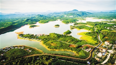 6月16日,空中俯瞰儋州市云月湖蔚为壮观。