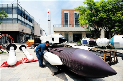 该馆总建筑面积约为一万多平米,一楼为中国航天历史及成就展示;二楼为纪念人民科学家钱学森及两弹一星元勋事迹展;三楼为中国航天发展创建历程及成就,馆内将展出的实物包括:东方红一号卫星、航天飞机、月球车、月球着陆器、CZ火箭系列、宇航员训练服、钱学森铜像、航天载人工程搭载物等。据悉,航天科普馆每年还将组织开展国际少年儿童航空绘画比赛、航空科技夏令营、科普知识讲座等活动。 本报记者 张杰 摄