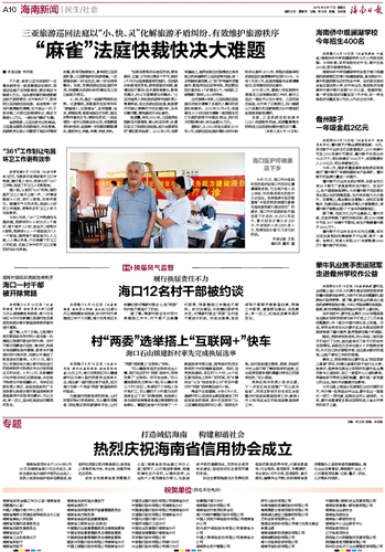 海南日报 海南新闻民生/社会 010 2016-06-171 2016年06月17日 星期五