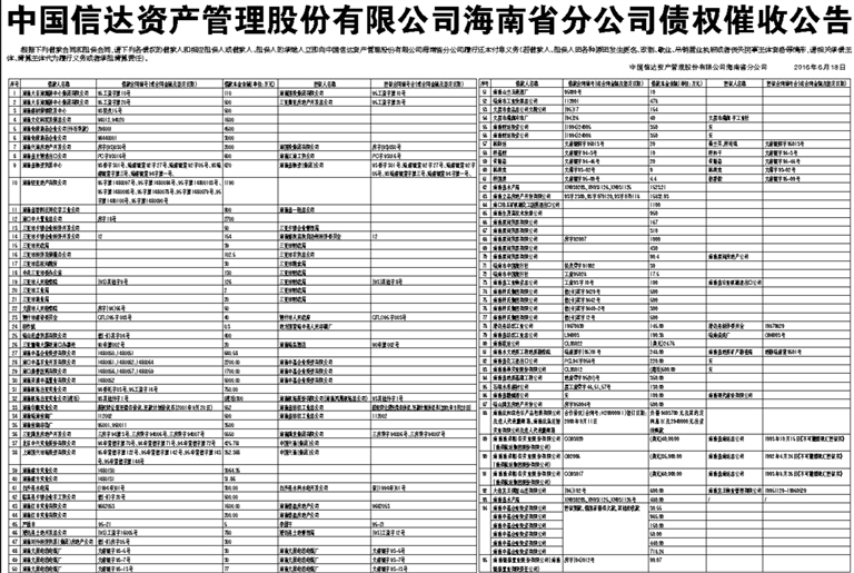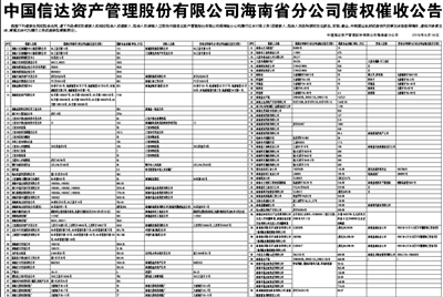中国信达资产管理股份有限公司海南省分公司债权催收公告