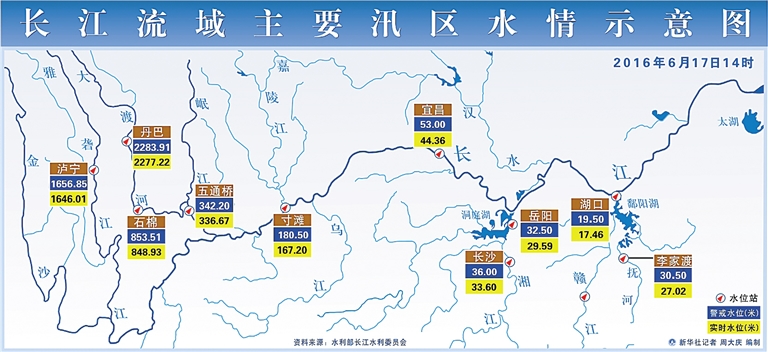 通报显示,6月14日至16日,江南、华南、西南东部等地再次出现强降雨过程,大于100毫米和50毫米的降水笼罩面积分别为7万和67万平方公里,最大日降雨量发生在广西河池洛阳(275毫米),最大1小时降雨量为湖南永州古宅(110毫米)。强降雨造成广东北江、湖南湘江、广西柳江和桂江等43条河流发生超警洪水,超警幅度0.01至4.13米。其中,湖南湘江支流涓水、广西柳江支流环江发生超过历史记录的大洪水;西江干流武宣站16日出现超警洪水,为今年西江第一次超警;太湖水位持续小幅超警。目前,全国其他大江大河大湖水位均在警戒水位以下,水势平稳。