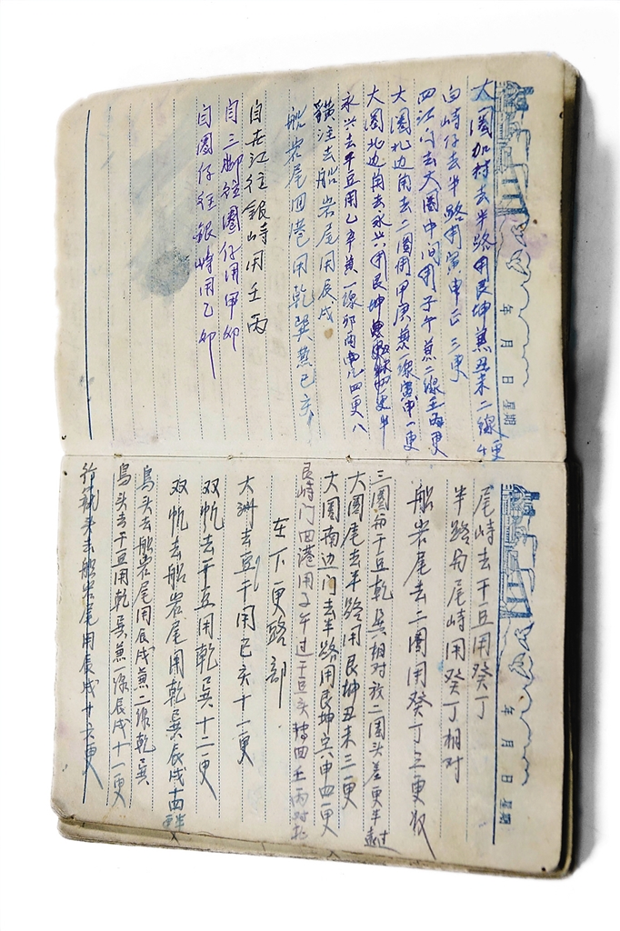 “我父亲用《更路簿》驾驶着木帆船出南海打渔,当年他交给我的《更路簿》上每一条线路,到如今我还能倒背如流。”站在那间《更路簿》展览馆中,王书保拿出一本略微发黄的日记本,内页上用钢笔整齐地记录着南海上一条条航线。