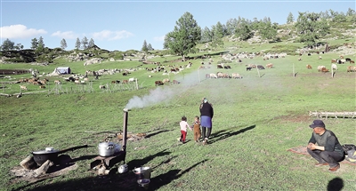这里的草原和高山牧场,随山地海拔高度不同具有分带性,草场一年四季生长期不同,转场就是让牛羊马等出现在草木最多的地方。这里的牧民每年不停地转场,每次少则迁移二十多公里,多则迁移近百公里,全年累计迁移距离平均在1500公里。