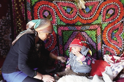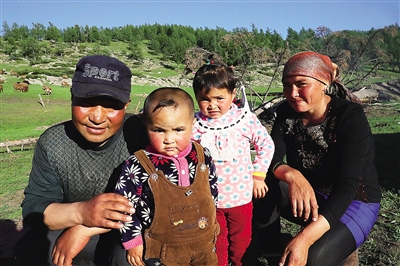 这天,今年32岁的阿克力拜山抱着2岁的儿子哈拉卡特,29岁的妻子抱着3岁多的女儿阿依丹娜。家里还有一个不到百天的小儿子巴克保别克,他和爷爷姐姐坐着卡车,天黑前会与他们会合。