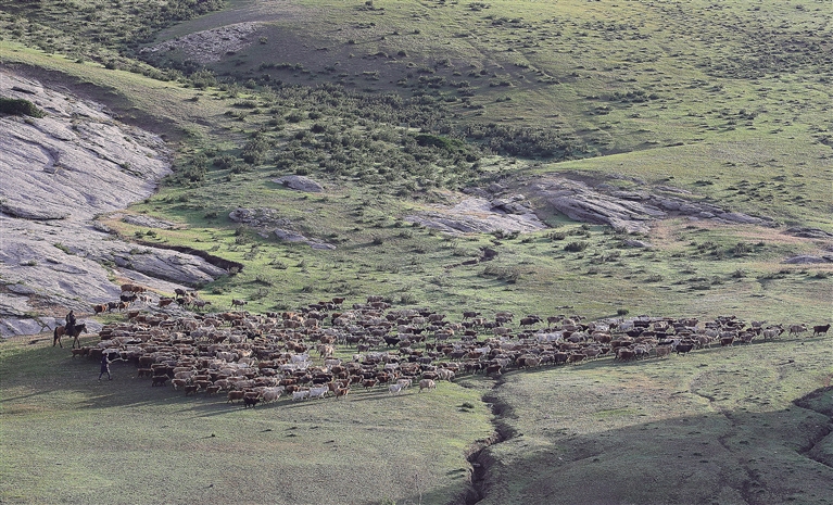 牧民世世代代都要转场,转场不仅能让牲畜有料可食,长距离的行走也是给动物们一个“锻炼身体”和“体检”的机会。一些体弱多病、生存力不强的牲畜在转场中或得到改善,或被淘汰。