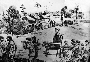 走进位于文昌市东路镇美德村的冯平同志纪念馆,一幅连环画引起了记者的极大兴趣:四个国民党兵抬着一个双手被绑在竹椅上的青年。画面中,青年穿着草鞋,身材魁梧。
