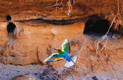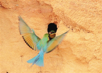 据了解,四五六月份栗喉蜂虎正处于繁殖、孵育幼鸟期,巢穴被破坏后,栗喉蜂虎也就没了繁殖栖息的地方。对于自己的巢穴,栗喉蜂虎有着特殊的要求,它们一般会选择土质软硬适中的沙坝或沙崖断面,利用嘴喙和爪子在崖壁上挖出深达一米左右的洞穴,然后在洞穴里产蛋、孵化幼鸟。