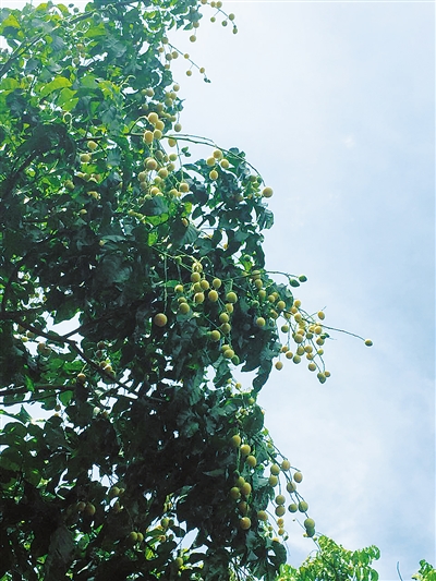 这株300年的黄皮树今年结果累累。符在明说,从挂果情况看,可采摘黄皮80斤,按照去年的行情,产值至少有800元。