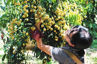 符在明说,像南吉村出产的黄皮,粒大颗圆、皮薄肉厚、汁多籽少、清甜爽口,与其它黄皮差别比较明显,去年每斤卖到10元,到最后都供不应求。