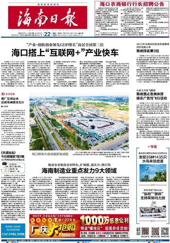 海南日报 头版 001 2016-06-221 2016年06月22日 星期三