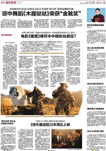 海南日报 娱乐新闻综合 017 2016-06-221 2016年06月22日 星期三