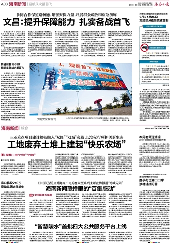 海南日报 海南新闻 迎航天火箭首飞 003 2016-06-221 2016年06月22日 星期三