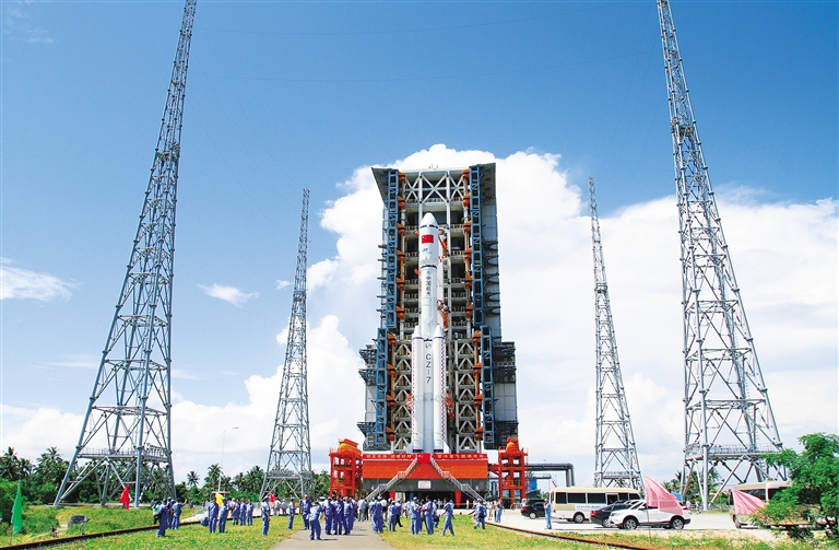 长征七号运载火箭及其搭载载荷等飞行产品自5月中旬陆续进场后,按照飞行任务测试发射流程,相继完成了总装测试等技术区各项准备工作。