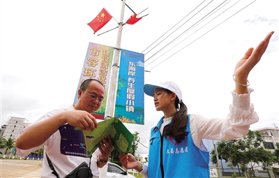 “我们是龙楼路口组的志愿者,早上8点就上岗执勤啦!”周红燕告诉记者,能够亲眼见证火箭在自己家门口发射感到无比幸福。同是“95后”的志愿者谢翠告诉记者,为了为此次火箭发射做好服务,志愿者礼仪培训半个月前已开始准备。“志愿者主要为游客提供咨询和引导服务,以及向游客免费发放龙楼镇旅游交通示意图”,看着一辆辆顺利驶入龙楼观测点的车辆,谢翠很是兴奋:“我在文昌读大学,现在又为长征七号文昌首发当志愿者,真的很自豪。”