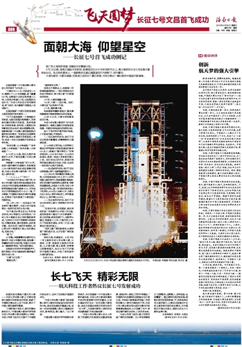 第004版 : 飞天圆梦 长征七号文昌首飞成功