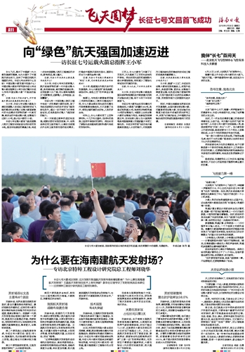 第011版 : 飞天圆梦 长征七号文昌首飞成功