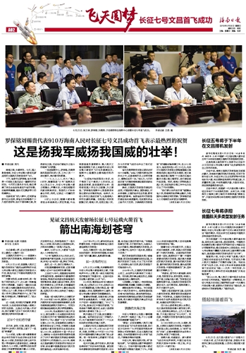 第008版:飞天圆梦 长征七号文昌首飞成功