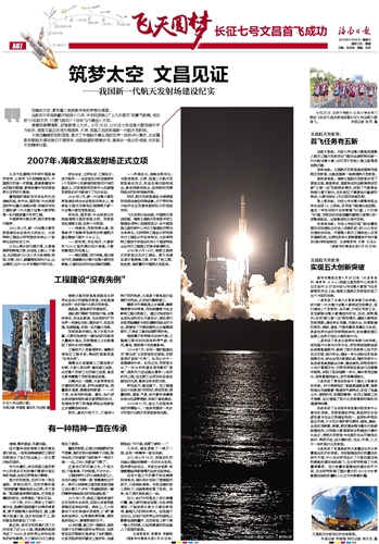 第008版:飞天圆梦 长征七号文昌首飞成功