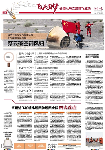 | 第011版:飞天圆梦 长征七号文昌首飞成功 |
