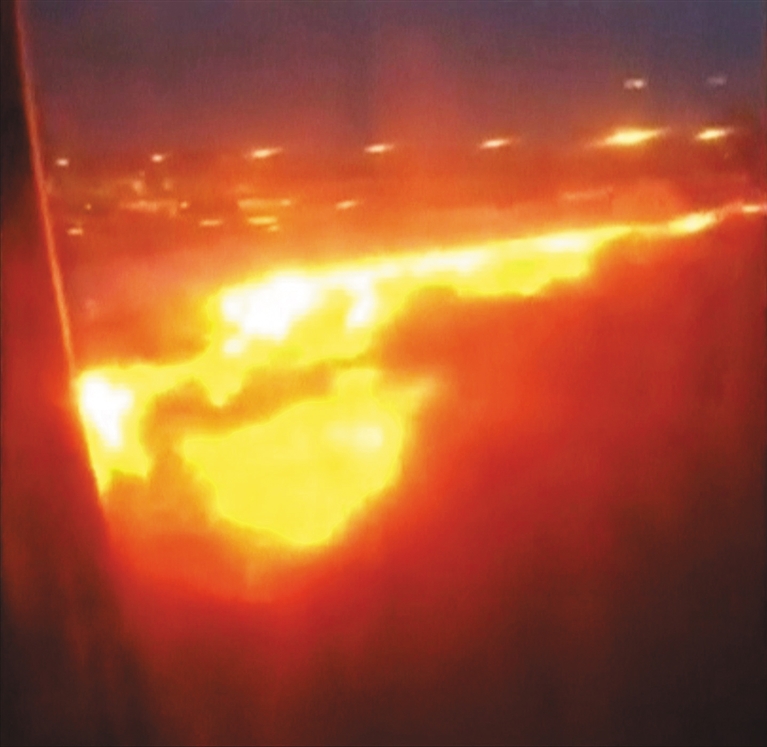 这张6月27日的视频截图显示的是新加坡航空公司SQ368航班客机右机翼起火。 当日,新加坡航空公司SQ368航班客机在新加坡樟宜机场紧急降落时右机翼起火。 新华社/路透