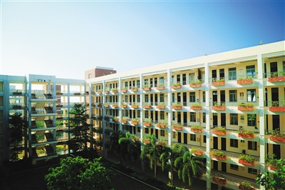 海南的夏季真有些许炎热,为了让学生在更加舒适的环境中学习、生活,学校致力于打造宜居环境。2016年上半年,学校每一间教室都装上了空调,图书馆有中央空调全覆盖,每间学生宿舍南北通透,电气线路改造完成后也将全部安装空调。
