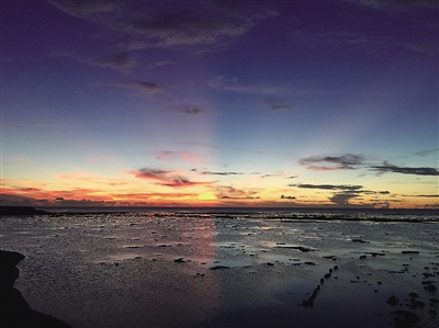 黎大宁在来信中说,这是他在西沙看到最美的晚霞之一,给该图取名为《晚霞明》,面对美景心里却记挂着母亲的病情,只能默默祝福母亲身体早日康复!