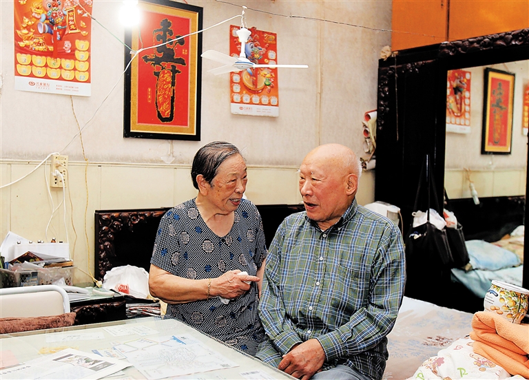 老党员陈子军(右)和老伴儿在上海市黄浦区淡水路的家里(6月21日摄)。 现年95岁的老党员陈子军与中国共产党同龄,他居住了65年的上海市黄浦区淡水路,离中共一大会址一步之遥。从当年帮助地下党员修收音机到如今利用互联网上党课,陈子军一生的经历与党的发展壮大相映衬。 新华社发