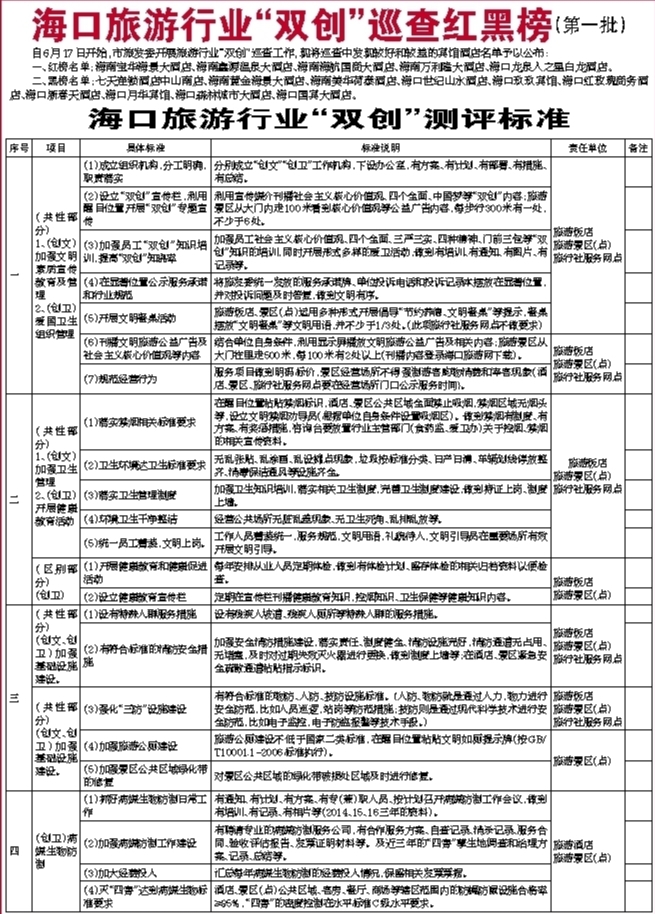 海口旅游行业“双创”巡查红黑榜(第一批)