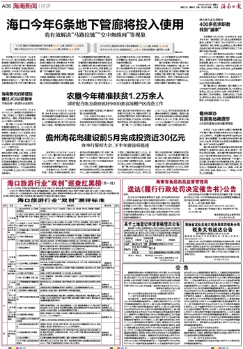 据了解,作为全省重点项目的海花岛旅游综合体,计划总投资1600亿元,今年计划投资50亿元。项目工地现已入驻包括中铁二局集团在内的多支建设队伍。由于各承建方精心组织、加大力度,建设进展很快。儋州市重点项目办、市发改委统计表明,今年1月至5月,海花岛旅游综合体及对岸配套工程共完成投资29.4亿元,投资率达58.8%,实现了全年时间未过半但完成任务已过半的目标。
