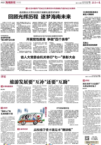 海南日报 海南新闻时政 002 2016-06-291 2016年06月29日 星期三