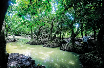 据了解,这片森林是以玉蕊为主要树种,伴有水翁、滑桃树、黑墨等树种共同构成的湿地森林群落。玉蕊森林主要分布在印度洋岸和东南亚国家,中国主要分布在海南岛和台湾岛。