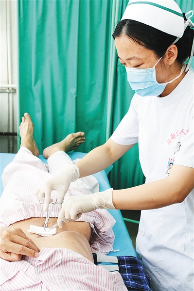 不少患者用“神奇”来形容王清华的伤口造口护理技术。去年1月,患者陈先生跨越2000多公里,从兰州千里迢迢慕名而来寻找王清华帮忙处理伤口。他说,“看到王护士长这么耐心为我制定治疗、护理方案时,我觉得我来对了。”经过一个月的跟踪治疗,左臂大面积烫伤的陈先生伤口感染明显好转。