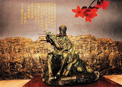 残破的军帽,褴褛的军衣,裸露的脚丫,老战士横笛吹奏,膝上依着凝神倾听的小战士……这尊曾多次进入小学课本的经典铜塑《艰苦岁月》,生动刻画了琼崖红军在母瑞山艰苦鏖战而依然保持革命乐观主义精神,承载了几代人的集体记忆。