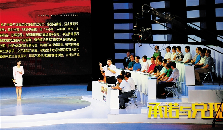6月29日晚,“承诺与兑现——2016年党风政风行风建设社会评价公开评价”在海南广播电视总台进行第三场直播,省林业厅、省水务厅等14个被评价的经济与社会管理部门,面对评价代表和社会公众,接受公开评价。