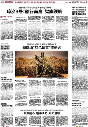 第002版:纪念中国共产党成立95周年暨中共琼崖地方组织成立90周年